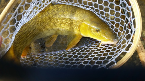 Geschafft, meine erster wirklich große Barbe auf einer Tenkara Rute. Langsam und ruhig, wie ein König schwamm sie in ihre Freiheit zurück.