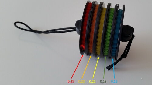 Wie erkenne ich schnell meine Vorfachstärken auf den Spulen ?