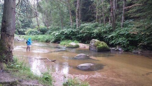 Nachteil ist natürlich, dass man, wenn keine Deckungsmöglichkeiten vorhanden sind und man nicht vorsichtig watet, vom Fisch sehr schnell gesehen wird. Bei sehr starker Strömung ist oft nur ein stromab Fischen möglich.