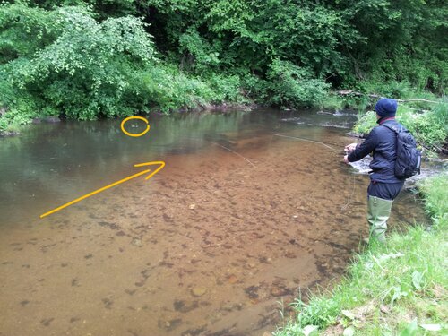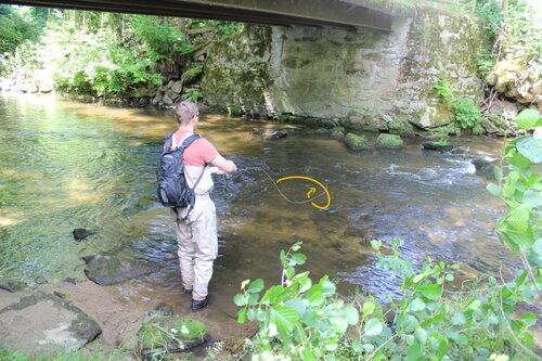 Den (vermuteten) Standort des Fisches quer stromauf überwerfen und damit hat die Nymphe mehr Zeit auf die passende Tiefe abzusinken.