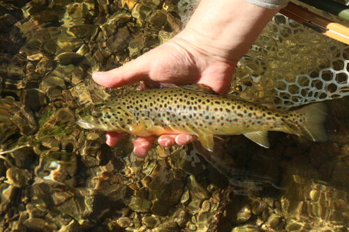 Ich empfinde es aber auch als sehr angenehm und bequem stromab zu fischen und die Fliege auch einige Meter vor mir hertreiben zu lassen. Dazu verwende ich dann gerne eine Trockenfliege aus Rehhaar, diese schwimmt perfekt und eignet sich auch als Schlitterfliege.